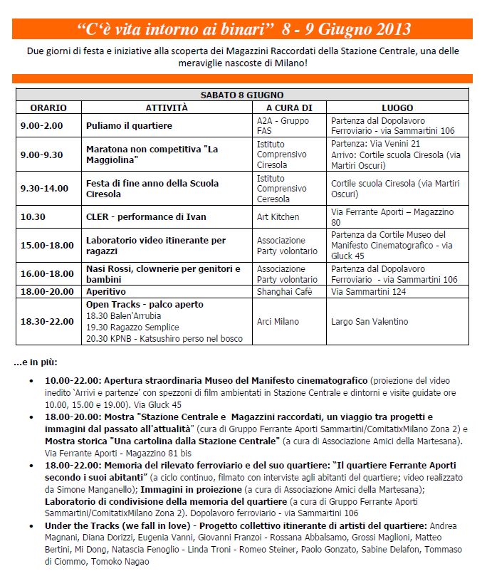 La mostra ha esposto i disegni prodotti dalle classi 4° e 5° elementare e le classi delle medie dell’istituto comprensivo Ciresola di via Venini e di viale Brianza, dopo avere approfondito a scuola e in quartiere il tema dei “Magazzini Raccordati” delle vie F.Aporti e Sammartini.